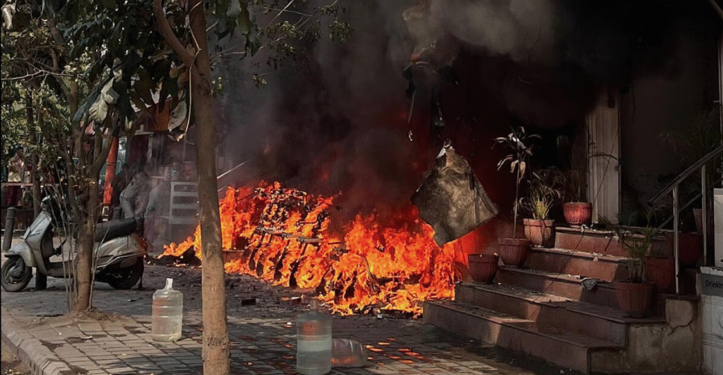 - Around 11:30 PM, a fire broke out in the basement of an EV showroom where scooters were being charged overnight.
